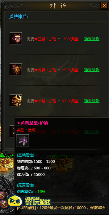 在特玩赤血炼狱游戏中,盾牌神兵是一件独特的装备,属性非常强力。